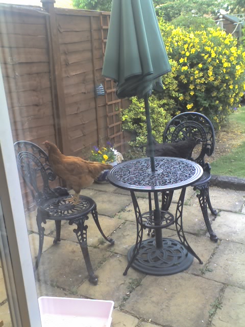 One of my chickens had escaped over the back fence and we had to drive around the other side of my estate to recapture Dolly. Fortunately my garden backs onto a small right of way alley and we managed to block off both exits. We had great fun trying to coax my girl into the basket, but we did eventually. My friend and local councillor then joked the things he had to do to help his community! A day in the life of…